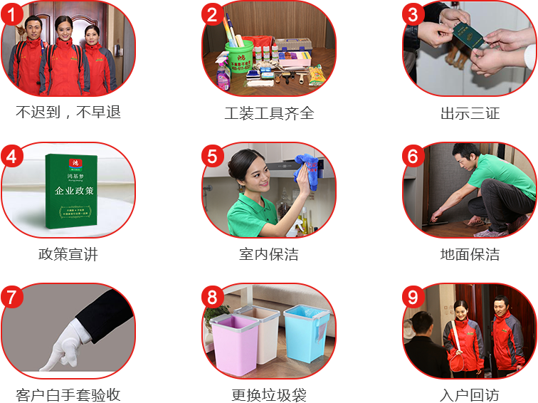 2.榦榦淨淨:服務完(wan)成(cheng)后(hou)沒(mei)有汚(wu)垢(gou)、塵土(tu)、雜(za)質